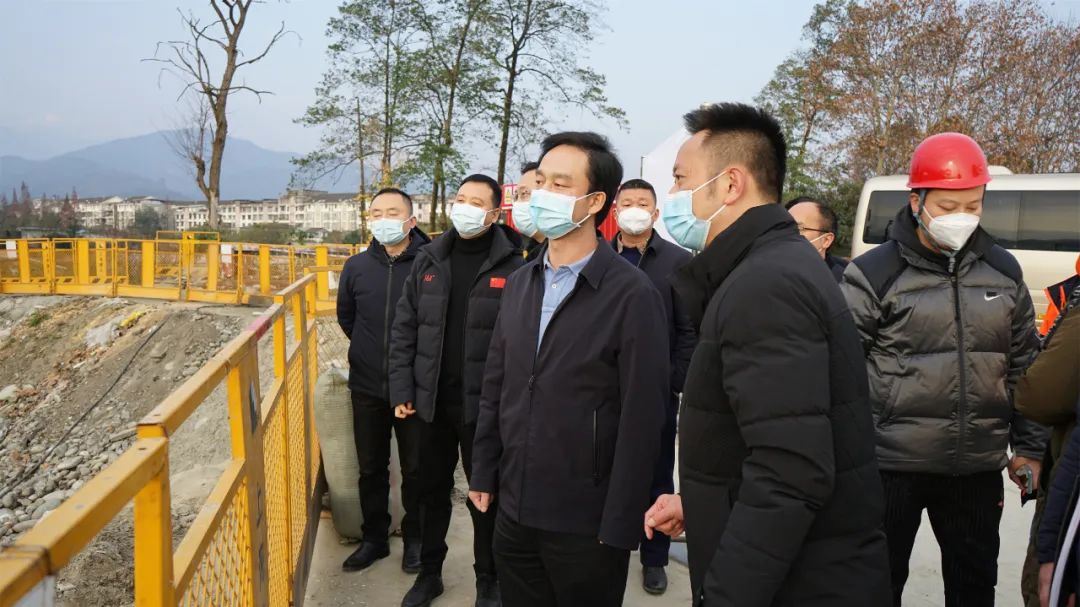 12月20日,都江堰市委书记蒋蔚炜到青城大桥主体工程施工现场督导调研项目建设情况