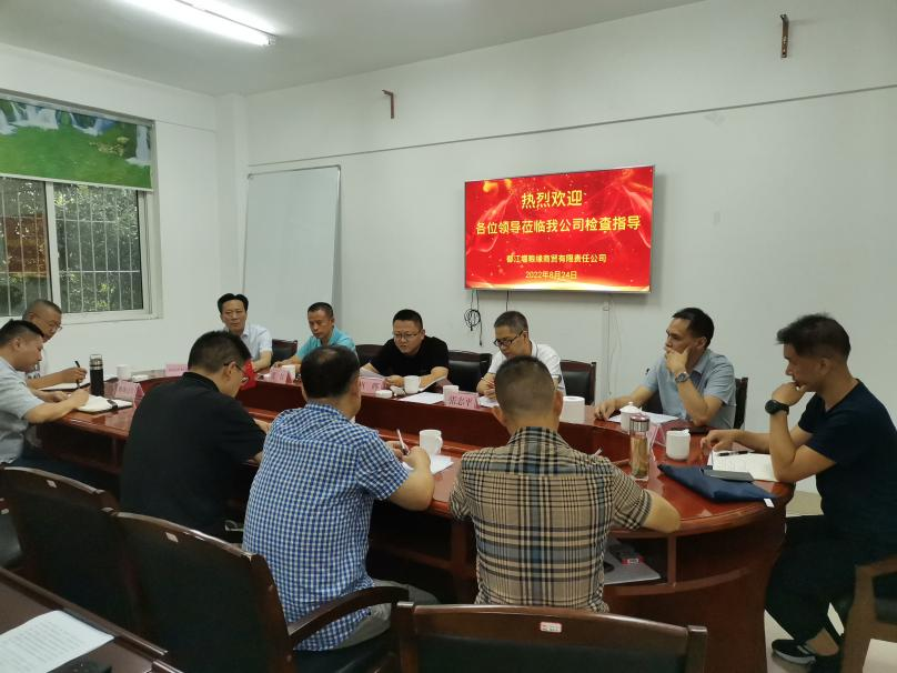 成都市发改委调控处处长唐晖与简阳市发改局、简阳市财政局及简阳市粮食企业相关技术骨干莅临新城建设公司下属粮缘公司都江堰粮食储备库指导交流粮油储藏和智能化平台应用工作,都江堰市发改局、都江堰市财政局、都江堰市经济和社会信用信息中心等相关人员陪同。