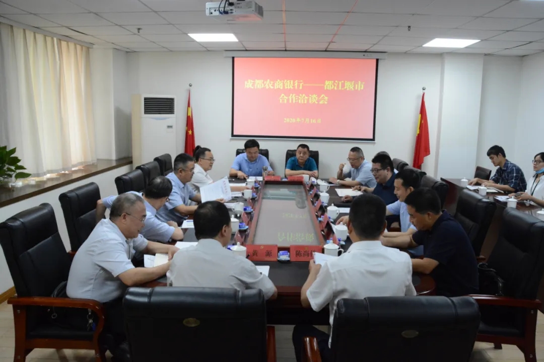 7月16日,我市举行成都农商银行—都江堰市合作洽谈会议,双方就深化相关产业战略投资合作、服务三农、创新金融产品、支持国企融资等深化银政企合作相关事宜进行深入交流。
